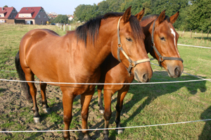 Stutfohlen und ein Wallach steht in Pension.